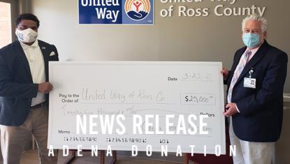 Thank you Adena Health System for your support of the United Way of Ross County. Employees and leadership donated $25,000 to support those in our…